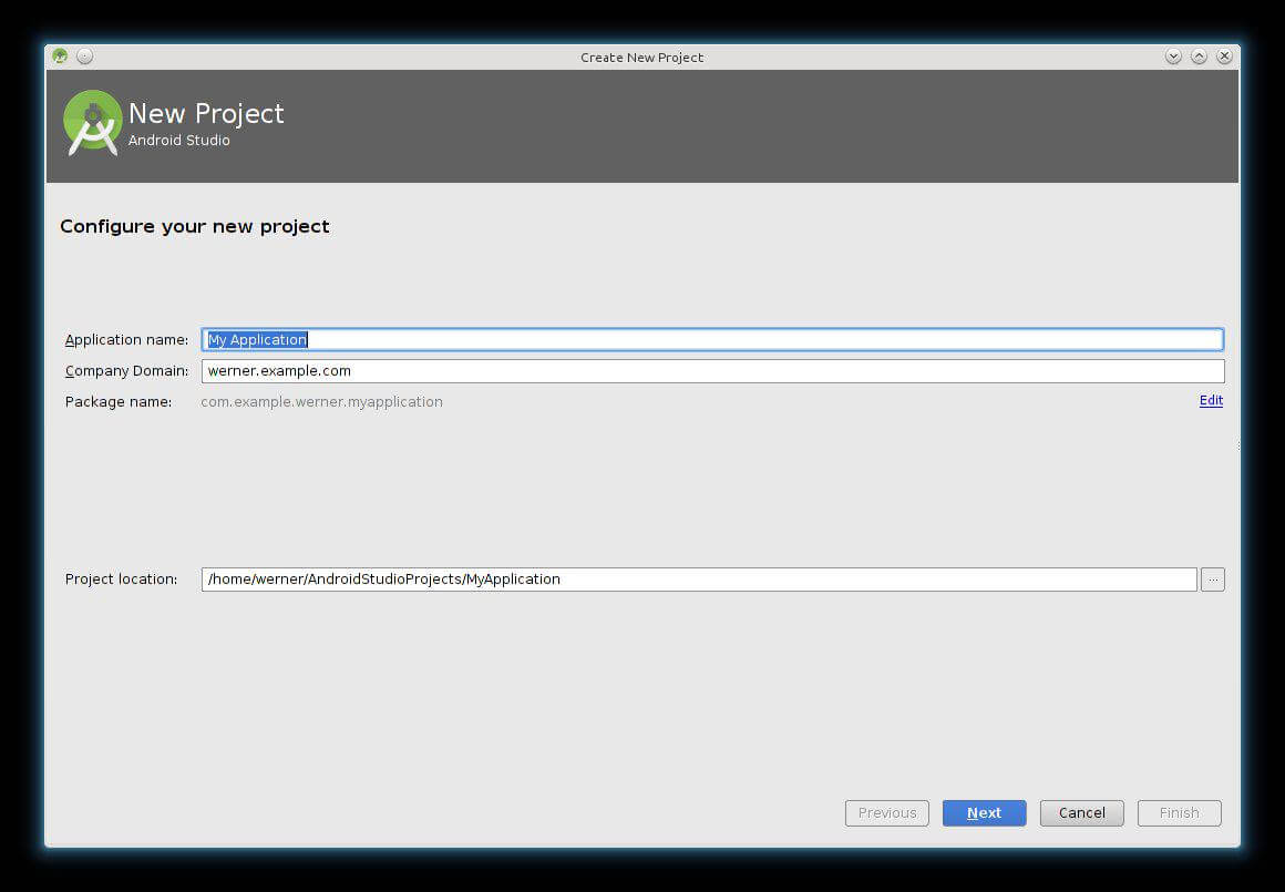 Neben dem Namen muss auch eine „Company Domain“ angegeben werden. Vor ausgefüllt ist eine Domain. Wenn ihr auf eurem Android Gerät auf der SD Karte den Ordner Android/data näher anseht werdet ihr dort jede Menge Ordner von Apps finden. Diese sind mit diesem Eintrag benannt. Der Android Browser legt seine Daten beispielsweise unter com.android.browser ab, Chrom unter com.android.chrome und so weiter. Domains sind weltweit eindeutige Bezeichner, deshalb kann man diese sehr gut zur Benennung der Ordner verwenden. Die Bezeichnung von appname.domain.com hat sich dabei etabliert. Falls du keine Domain besitzt, kannst du eine fiktive Domain angeben. Es ist nicht Voraussetzung, dass diese auch registriert ist.