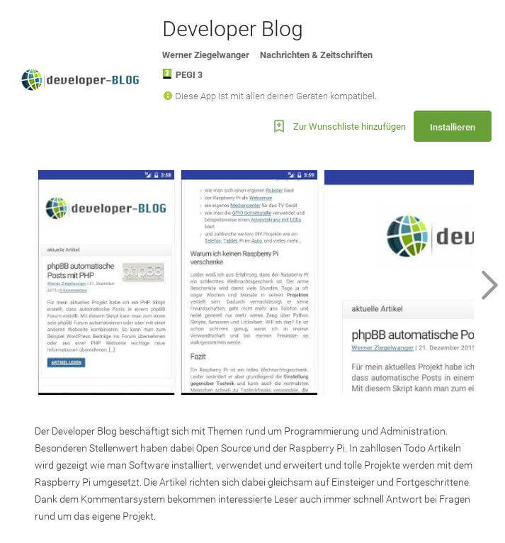 Developer Blog App im Google Play Store erhältlich