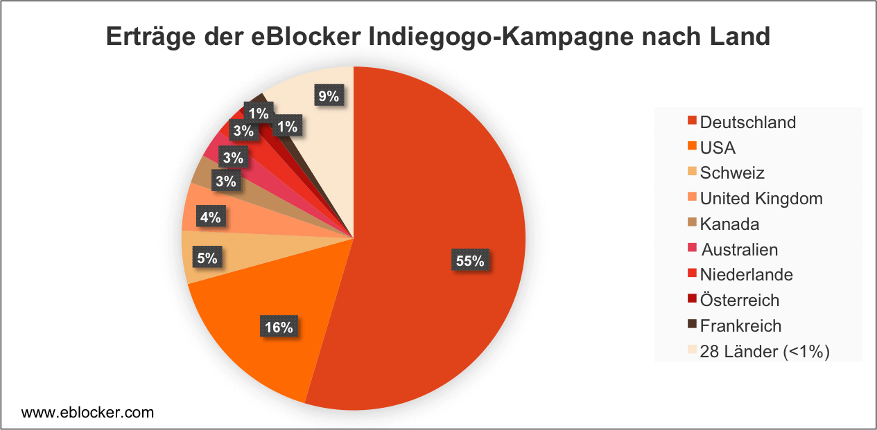 In meinen letzten Artikeln zum eBlocker und wie man die eBlocker Software aktualisiert habe ich euch ja bereits gezeigt worum es bei dem Projekt geht und wie man die Early Bird Version aktuell hält. Die Analyse der eBlocker Kampagne zeigt, dass das Projekt vor allem im deutschsprachigen Bereich die größte Reichweite hatte. Obwohl die Kampagne selbst komplett auf Englisch angelegt war. Vermutlich ist dies vor allem durch die Berichterstattung einiger Medien (unter anderem auf meinem Blog) zu dieser Verteilung gekommen. Nicht zuletzt gibt es aber mit der USA, Kanada, Großbritannien, … auch zahlreiche andere Länder die in der Statistik der Baker aufscheinen. Besonders interessant sind Kommentare auf der Plattform selber die zeigen, wie gut die Idee angenommen wurde.