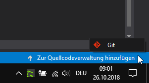 Im geöffneten Projekt findet man rechts unten im Visual Studio Fenster die Quellcodeverwaltung. Über einen Klick werden die verfügbaren Systeme zur Versionierung angezeigt.