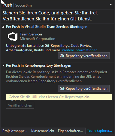 Die größte Hürde für die meisten Nutzer ist vermutlich nun die korrekte URL zum Git Repository im Visual Studio Team Explorer anzugeben. Die URL lautet:
