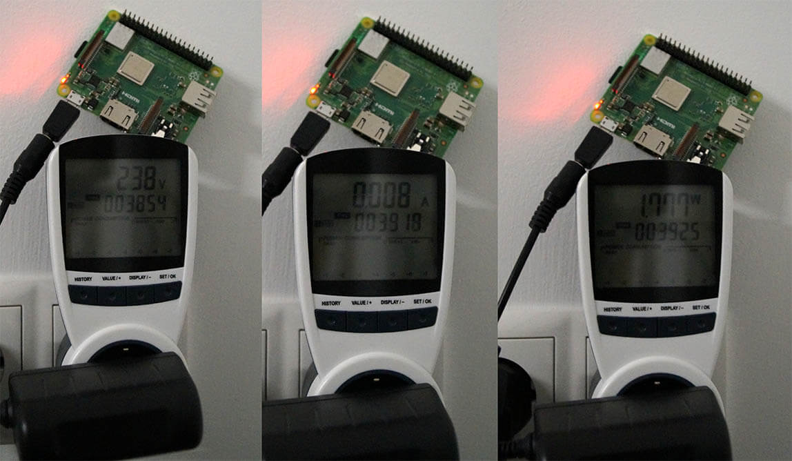 Es liegt auf der Hand, der Stromverbrauch vom Raspberry Pi 3 Modell A+ ist doch geringer als beim großen Bruder. Der um ein drittel kleinere Rechner wird doch auch mindestens so viel weniger Strom benötigen. Ob das so ist habe ich mir angesehen.