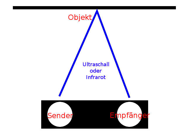 Abstandsmesser (egal ob Ultraschall oder Infrarot) funktionieren nach folgendem Prinzip: