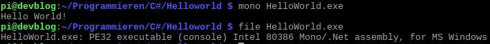 Als Ergebnis erhalten wir nun die HelloWorld.exe Datei. Doch Moment mal…wie kann man denn *.exe Dateien am Raspberry Pi ausführen?