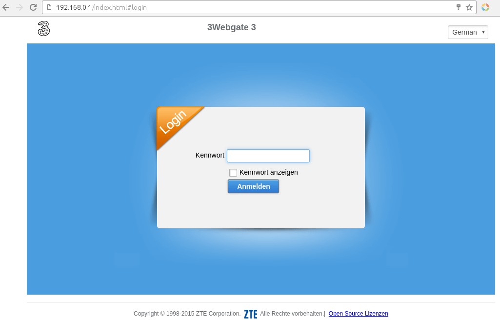 In meinem Fall ist das ein ZTE Router, der vom Internet Anbieter (Hutchison Media bzw. auch in Österreich Drei genannt) gebrandet wurde. Zugangsdaten für euren Router habt ihr entweder in einem Schreiben vom Anbieter bekommen oder stehen auf der Rückseite des Routers auf einem Aufkleber. In seltenen Fällen gibt es dazu gar keine Informationen und man muss das Router Modell nach Standardlogin googlen. Bei meinem alten Router fand ich so heraus, dass die Zugangsdaten admin/admin waren.