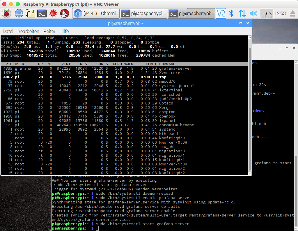 Insgesamt ist die Installation für ARM etwas mühsamer, aber durchaus möglich. Weiter geht es nun mit der Konfiguration und dem Betrieb der Grafana Monitoring Lösung für unseren Raspberry Pi.