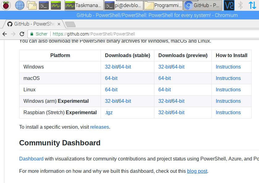 Seit einiger Zeit wildert Microsoft auch in fremden Gebieten. Ganz besonders fällt das bei der Neuimplementierung von .NET mit .NET Core auf. .NET Core ist Open Source und dazu gehört auch die PowerShell Core – eine Shell wie unter Linux beispielsweise die Bash die besonders gut mit .NET interagiert. Open Source heißt gleich auch Betriebssystem unabhängig. Sobald der Code offen ist gibt es immer wieder einen Fan von System X der das darauf implementiert. Die PowerShell Core läuft deshalb unter Windows, Linux und auch Mac OSX. Auch am Raspberry Pi?