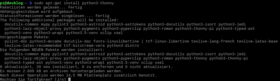 Thonny ist für Raspbian Linux aktuell über den Paketmanager zu installieren. Zuvor war das nur über PIP möglich (steht für PIP installs Python). Das funktioniert so: