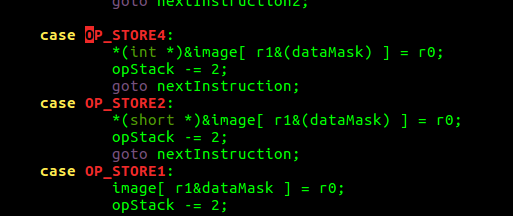 goto nextInstruction;Ganz nebenbei bemerkt sind diese goto Anweisungen im C Code ein NoGo! Was haben sich die Entwickler dabei damals gedacht?