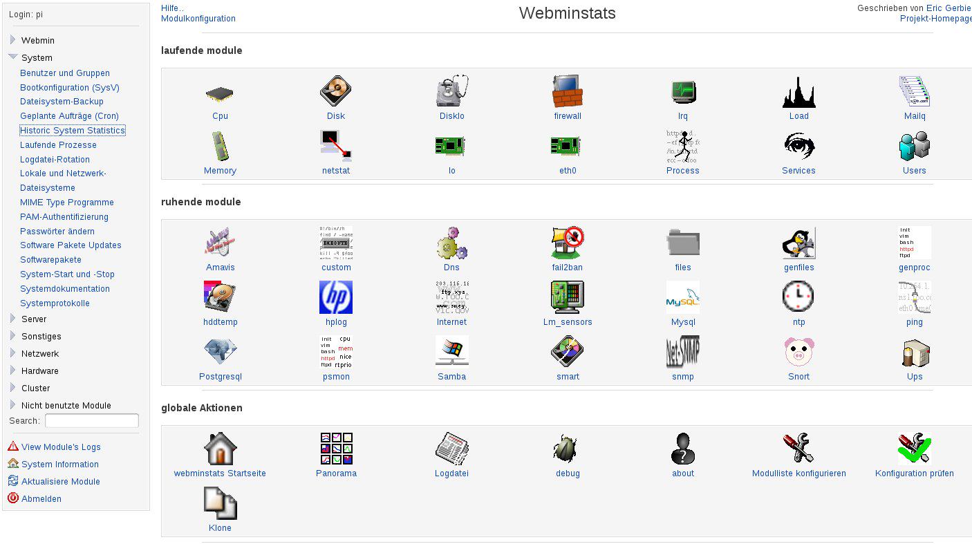 In diesem Artikel zeige ich euch wie ihr am Raspberry Pi Webminstats installiert und verwendet. Ich beziehe mich dabei auf die bereits erfolge Installation und Konfiguration von Webmin, diese ist die Voraussetzung damit Webminstats korrekt funktioniert.
