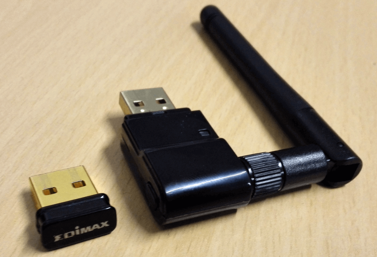 Bis jetzt hatte ich immer meine Edimax WLAN Sticks in Verwendung. Diese Sticks sind günstig, klein und funktionieren mit den aktuellen Images für den Raspberry Pi problemlos. Leider haben sie hin und wieder das Problem, dass sie das Signal verlieren (bei dicken Wänden oder viel Eisen in den Wänden) und im Freien nur eine mäßige Reichweite haben. Die Übertragungsgeschwindigkeit ist mit den max. 150 Mbit/s akzeptabel, aber auch nicht herausragend.