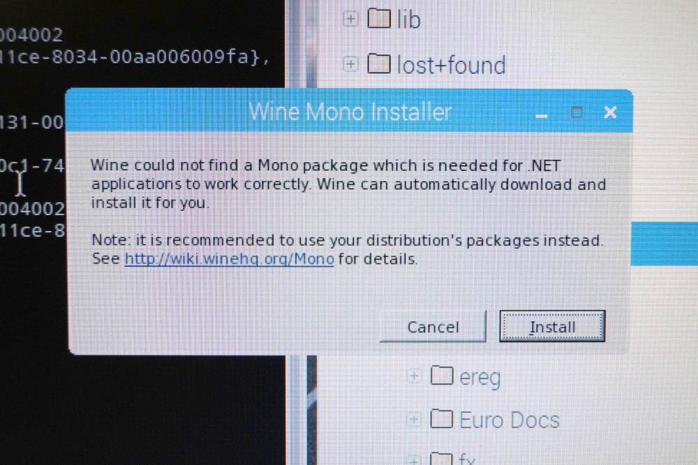 Führt man wine das erste Mal aus, dann muss man am Raspberry Pi noch zusätzliche Software installieren. Die Installation läuft wie unter Windows bekannt mit einem Installer ab, begonnen wird mit der Mono Umgebung: