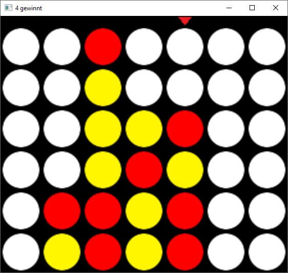 Mit aktuellen Einstellungen ist die KI schon sehr stark und macht fast keine Fehler. Man muss schon gut Vier Gewinnt spielen können um sie zu besiegen. Ihr könnt nun gerne mit den KI Konstanten experimentieren. Da kann man zum einen die berechnete maximale Tiefe des Spielbaums einstellen (ist der Wert zu hoch rechnet der Computer ewig!). Außerdem kann man über die WEIGHTFACTORS in den Konstanten definieren wie stark eine 2er, 3er und 4rer Reihe sich auf den cost Wert für den Minimax Algorithmus auswirkt. Ändert man diese Werte merkt man, dass die KI andere Züge durchführt. Ob diese dann besser oder schlechter ist stellt man meist erst nach mehreren Partien fest.
